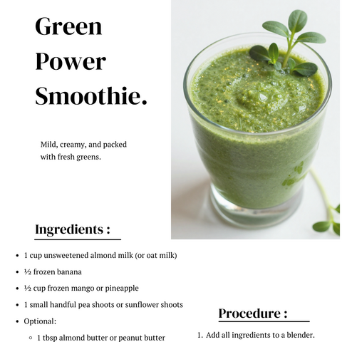 Microgreens are tiny seedlings picked at their freshest, holding bright flavour and concentrated goodness.